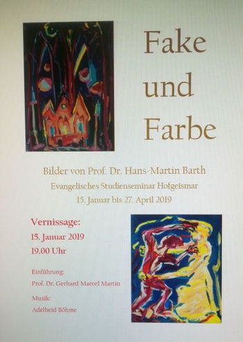 Der Marburger Hochschullehrer Prof. Hans-Martin Barth stellt am Anfang des neuen Jahres im Studienseminar seine Bilder aus unter dem Motto “Fake und Farbe”.